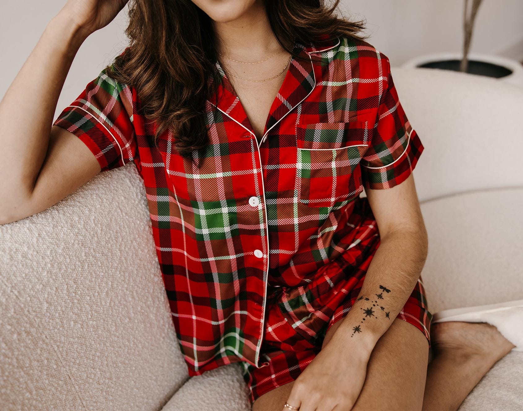Celebrate the season in our Red Plaid Satin Christmas Pajamas, designed for festive comfort and picture-perfect matching. Made from a premium satin blend with a touch of spandex, these PJs feel silky-smooth while offering just the right amount of stretch for all-night comfort.