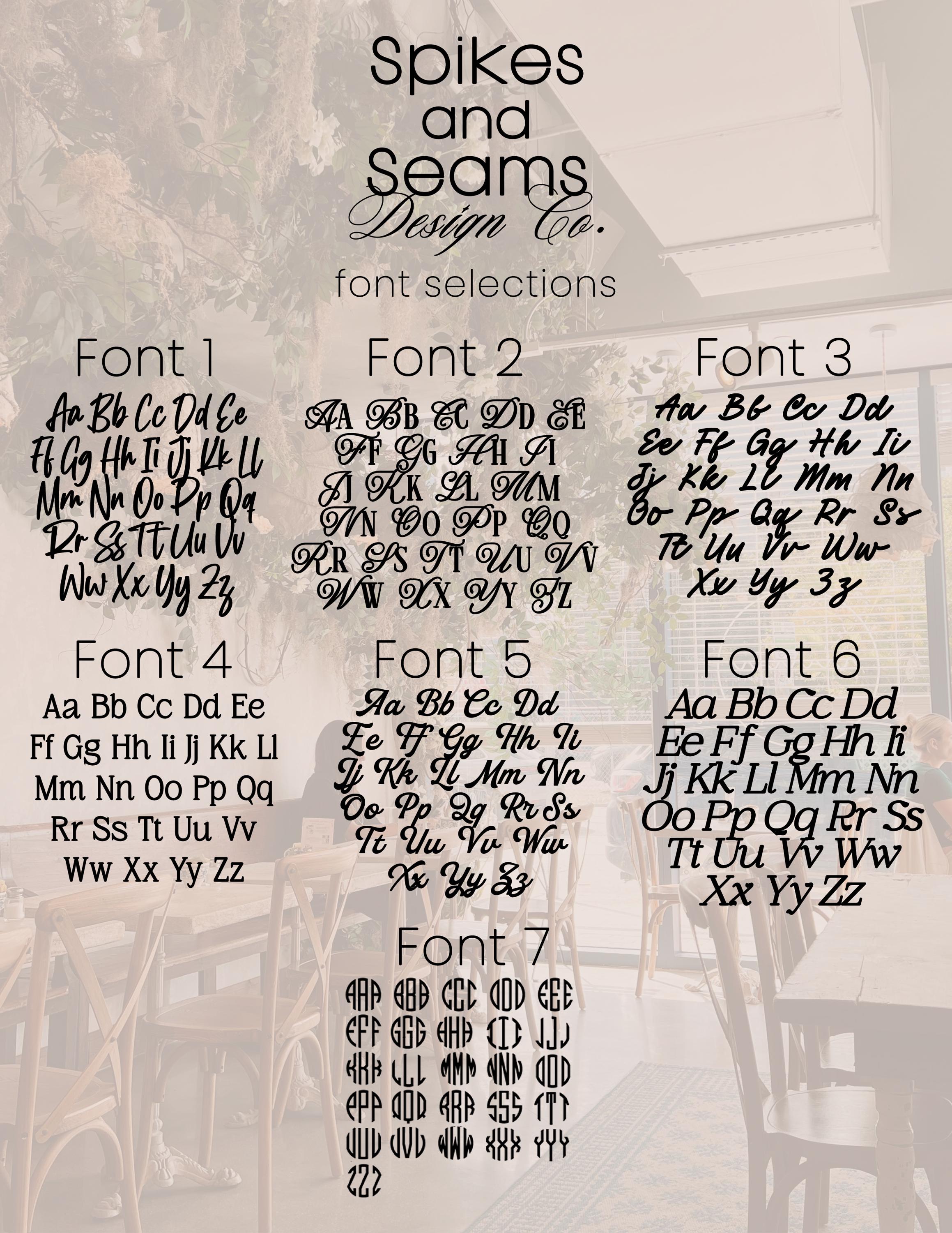 Almost all listings offer customization options allowing customers to create pieces tailored to their preferences. From font options, to text color choices, to custom text input, we are happy to help customers design their one of kind orders. If you want a font you don't see or need to match a color scheme, please contact us for additional customization options!