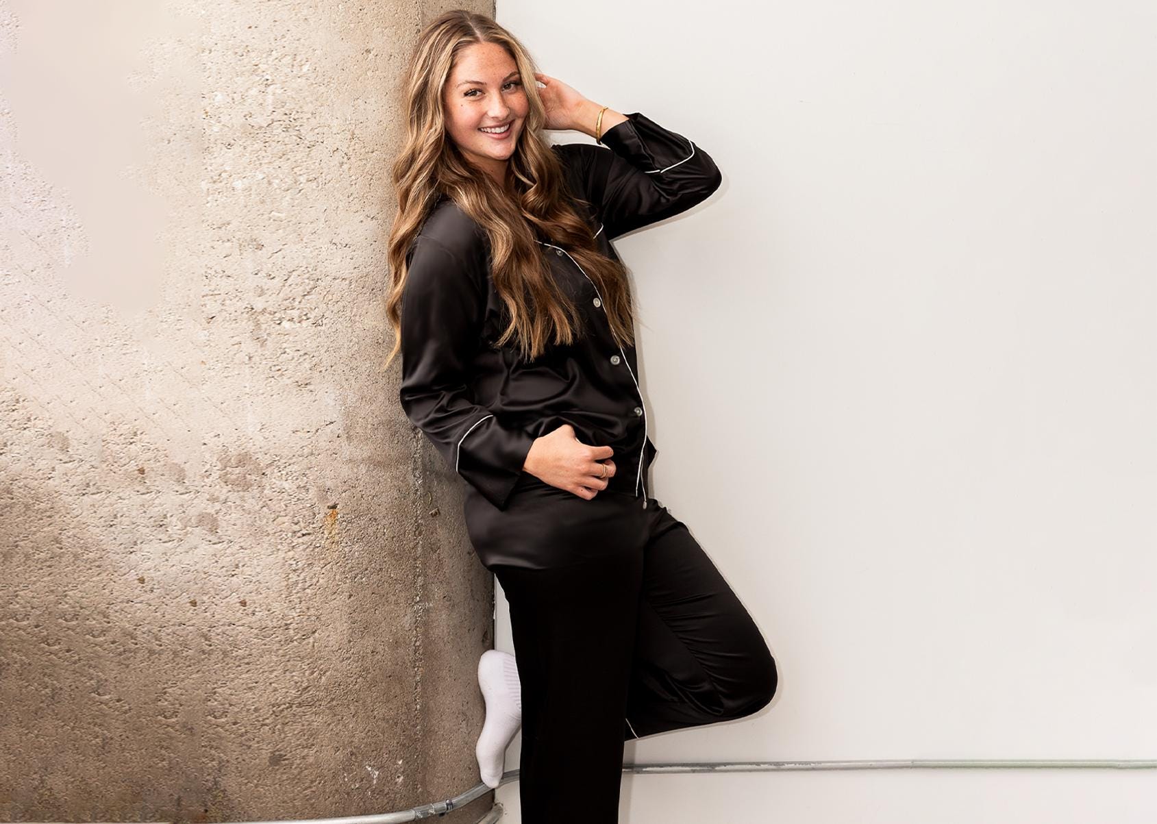 ⦁ Signature soft satin blend with stretch