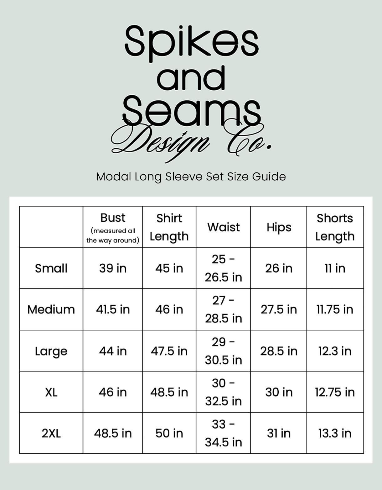 Welcome to Spikes and Seams✨ a female & family owned luxe sleepwear label celebrated for our one of a kind patterns, ultra soft fabric blends, & thoughtful design details.